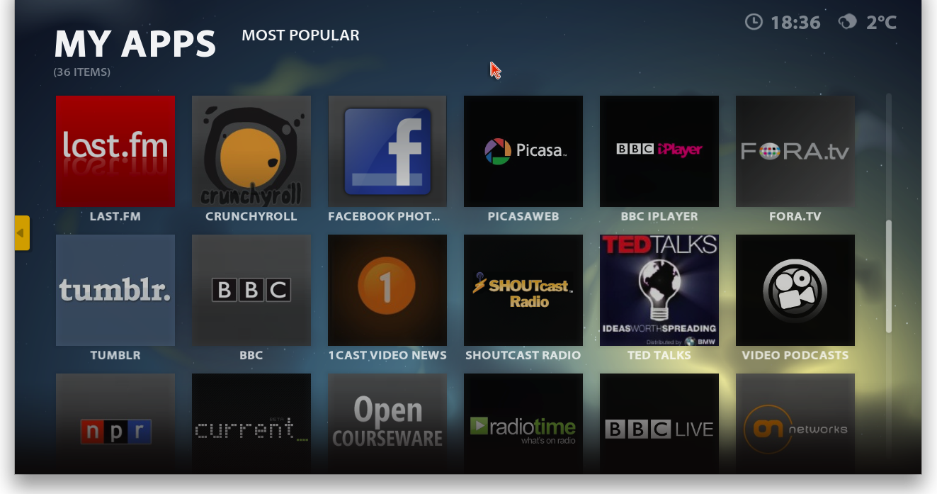Despite the lack of online content in the TV section there is a vast array of applications that can be installed to help. Similar to Plex you can access iPlayer, Revision 3, Wired and a whole host of other internet based TV and video. There’s also some great photoblogs like The Big Picture which looks great on a large screen.