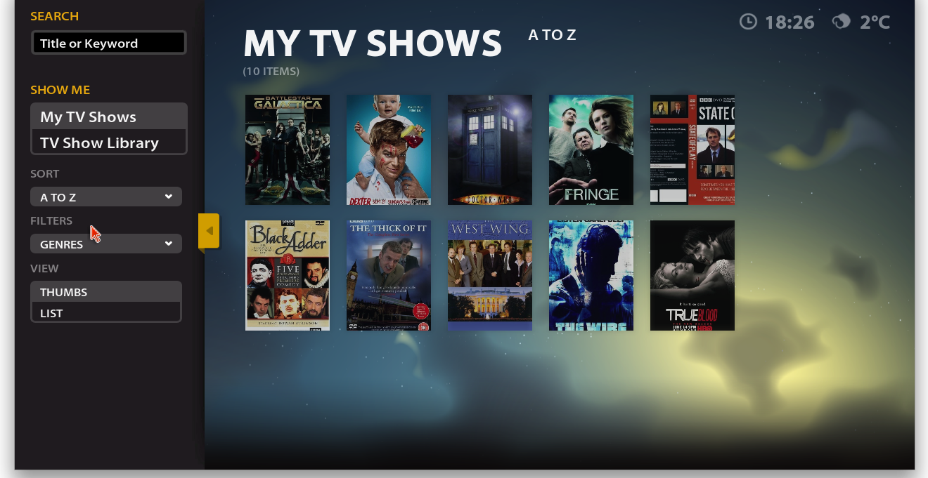 One big difference in TV Shows is the availability of online content…for some of us! In the left hand side panel instead of My TV Shows which displays local TV content only select TV Show Library. This will refresh and display TV series that are available for free in your region.