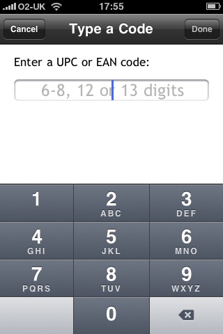 Additionally, you can manually enter a UPC or EAN code, and the app will search for the correct product from Amazon and Google.