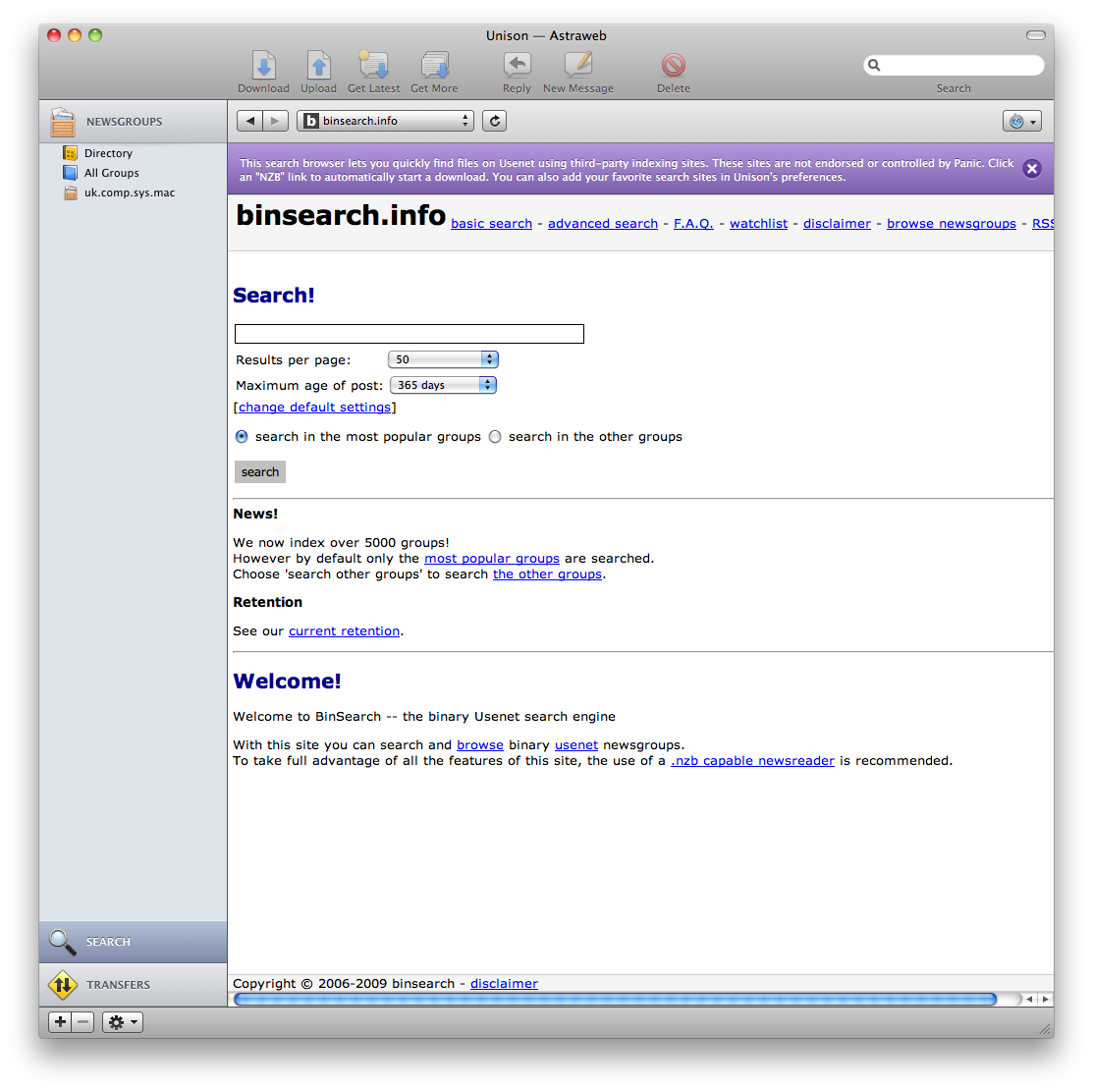 In use I’ve found it to be fast and reliable and the new features have really added to the usability of the application. Unison 2 costs $29 for one licence or $18 for an upgrade form version 1. I think that’s a bargain for the functionality you get in return. If you are a heavy binary newsgroup user then another option is SABnzdb which is a cross platform binary newsgroup reader that doesn’t have a GUI but once setup is very powerful and offers a number of scriptable and customisable features but for my occasional toe dipping into newsgroups, Unison 2 is my tool of choice.
