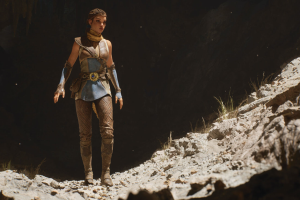 – It’s using a modified Unreal Tournament level previously shown off at GDC. A virtual thumbstick on the left side of the screen controls your movement, while tracking your thumb in the lower right corner of the screen controls the camera. Just tap the screen to shoot. Mark said this is a tech test bed and they’re experimenting with several different control schemes including ones with tilt.
